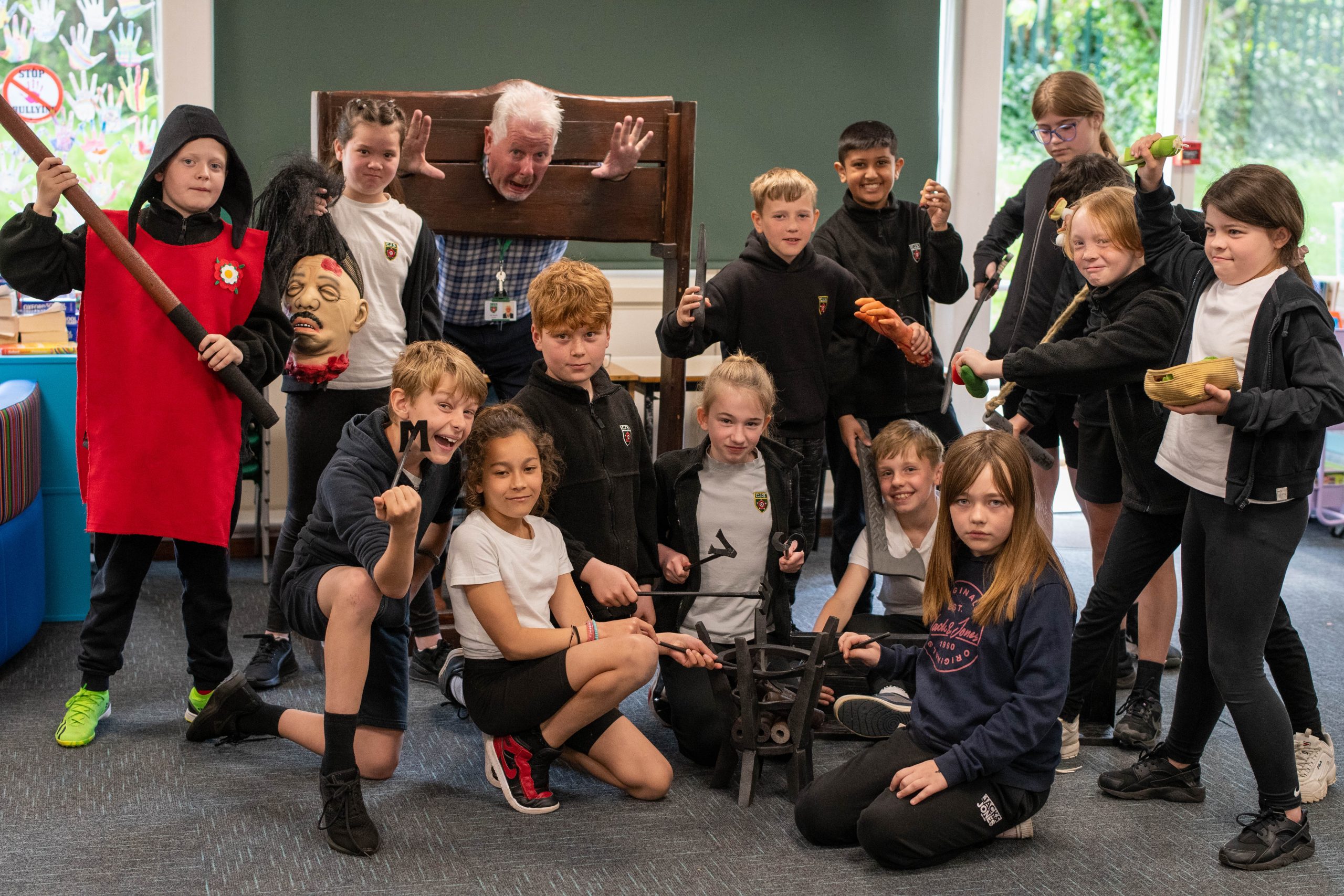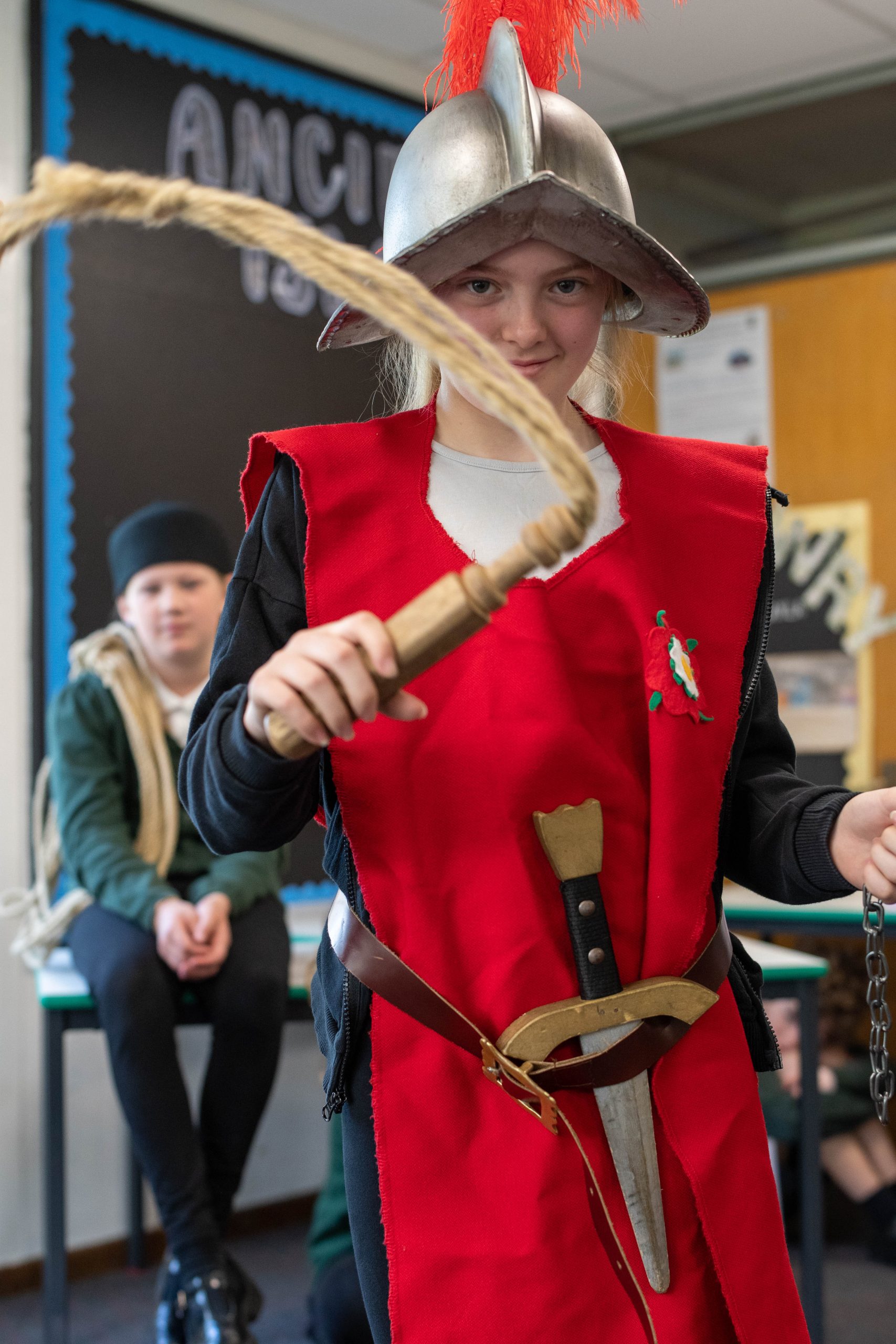 With the use of our amazing foam weapons, musket and cannons, students re-enact a famous battle against the Scots as we examine the era where medieval and modern weapons are used on the battlefield.